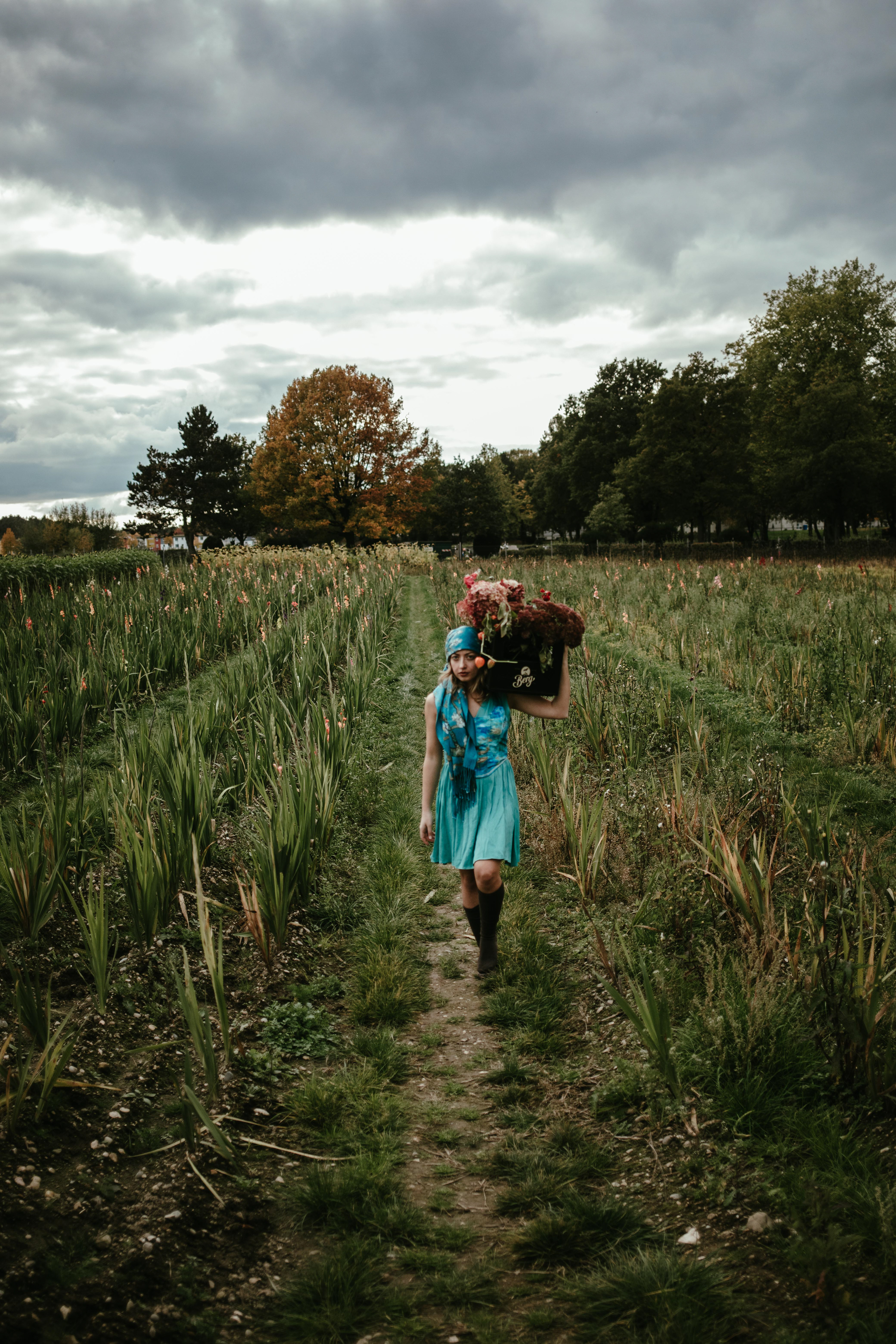 An editorial inspired by autumn life, countryside textures, and seasonal harvests — second-hand garments bring rustic elegance to a world of vegetables, fields, and natural colors.